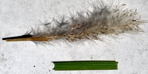 Blossom with seeds and blade, the blade has an offset whitish midrib. Photo by Green Deane