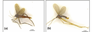 Orseolia javanica, female left, male right.